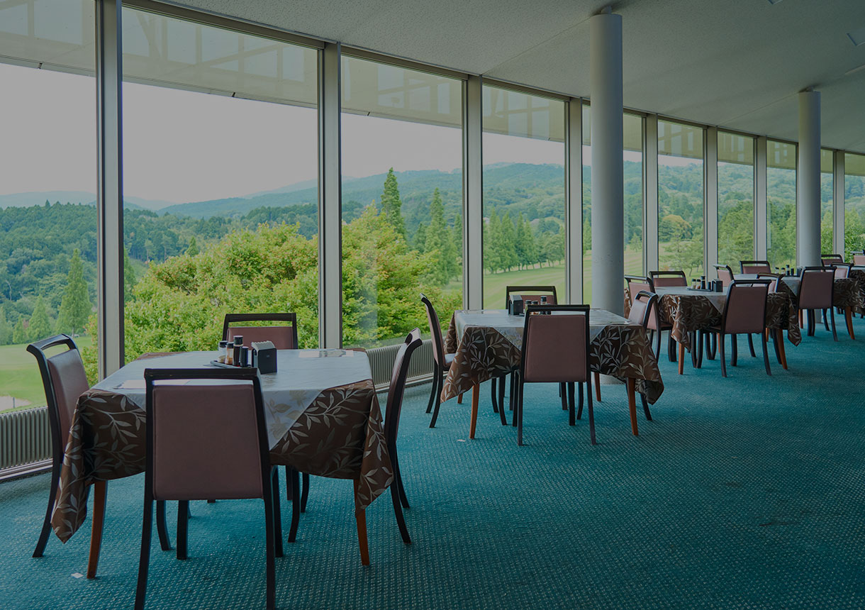 熱海INコーススタートホールにあるレストハウス『蜂の巣』。スタート前にゆっくりとレストランで食事を楽しむこともできる、くつろぎのスペースです。