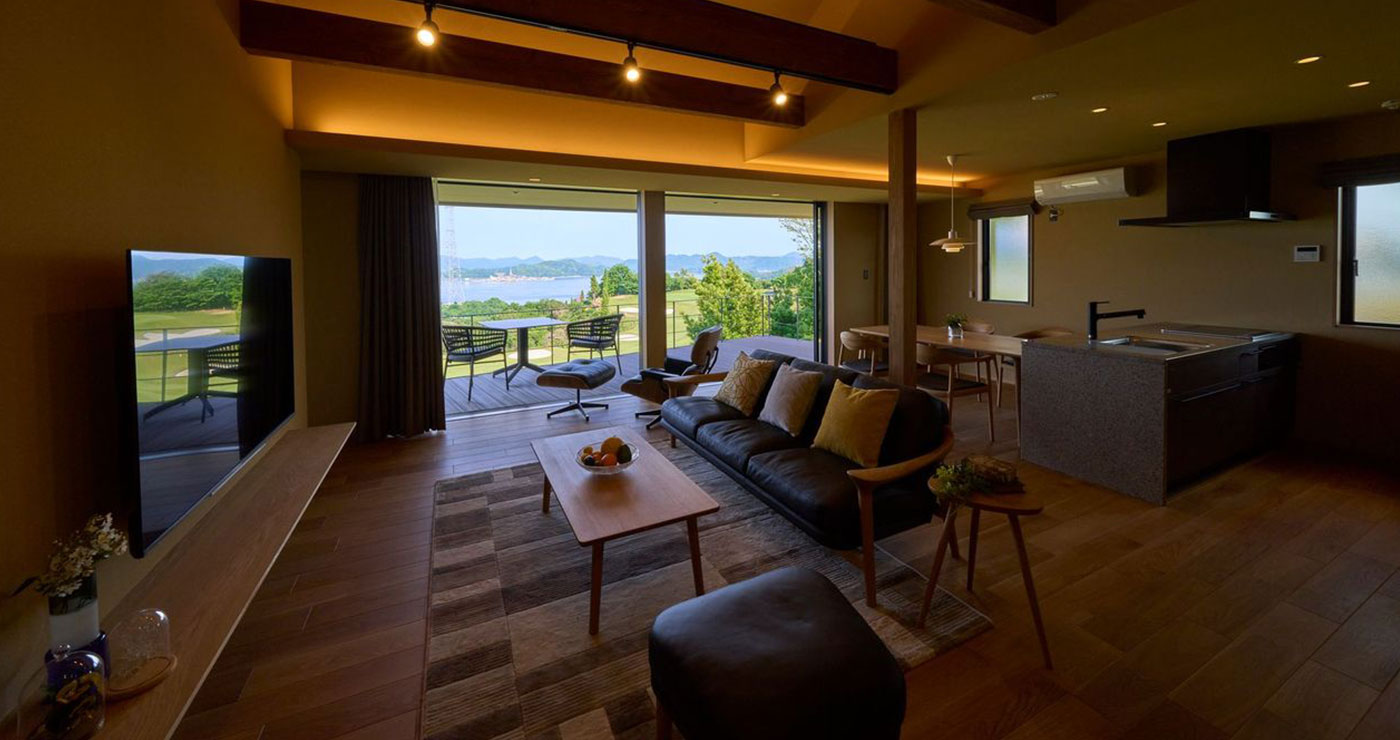 船を思わせるような大屋根が象徴的なクラブハウス。広々としたロビーやレストラン、大浴場を備え、特別な時間を演出します。