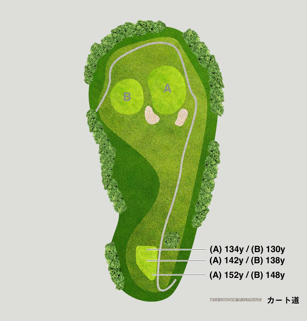谷越えのショート。大きめのクラブで確実にグリーンを捉えましょう。