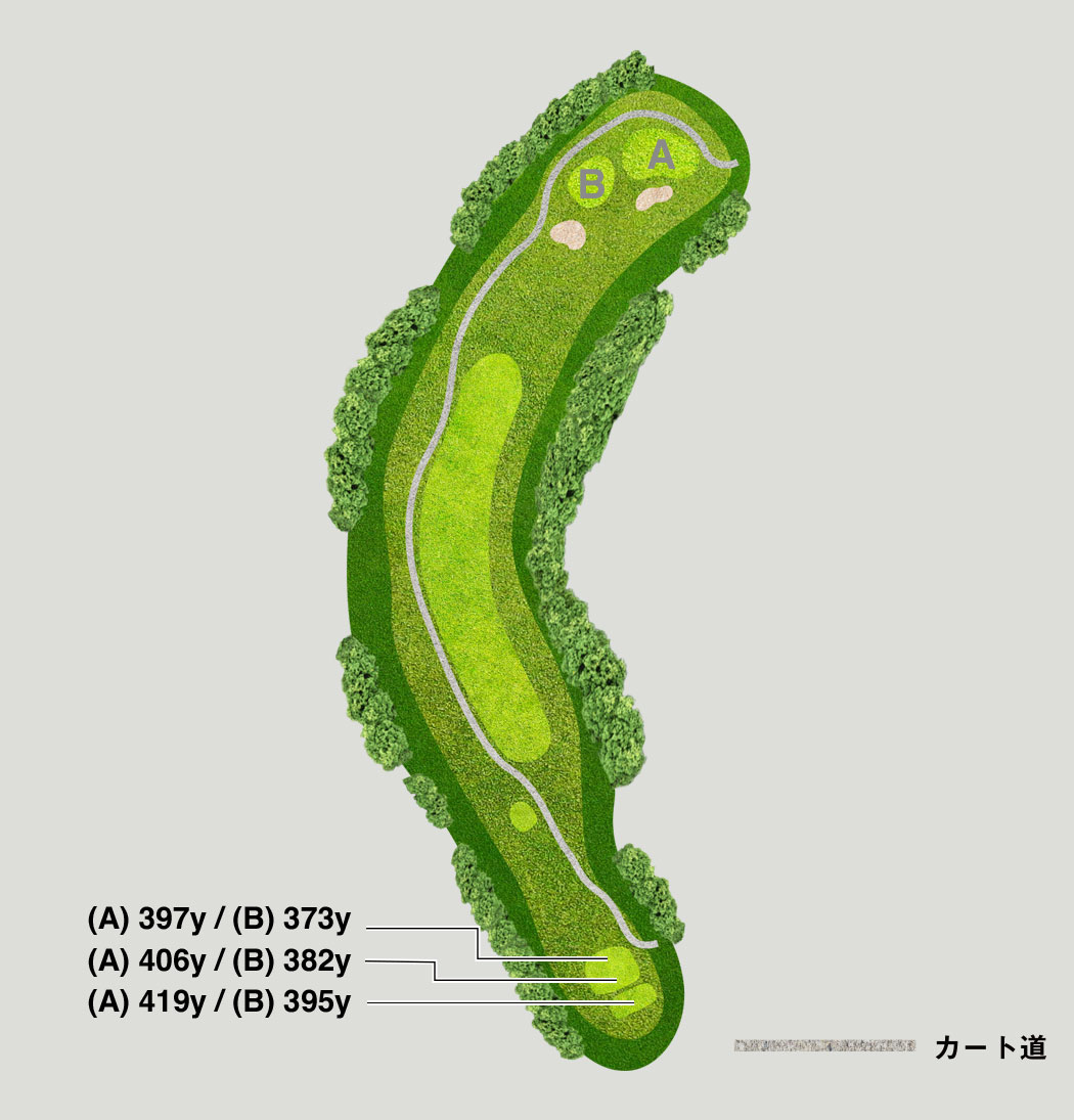 セカンドショットは打ち下ろし。右は1ペナのため、注意して打ちましょう。