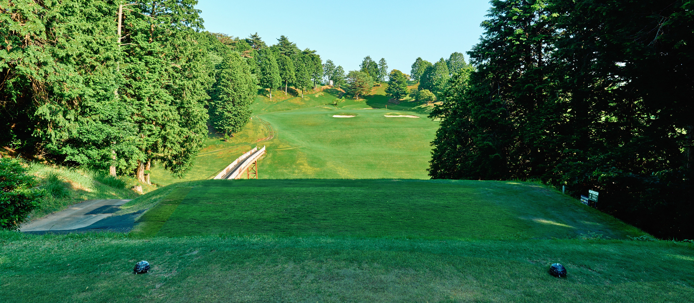 谷越えが必要です。キャリーでグリーンを狙いましょう。左右にバンカーあり。