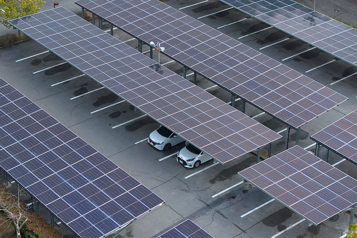 Solar carports have been installed at our Kuji, Iruma, Chukyo, Setouchi, and Arita facilities, promoting the use of renewable energy.