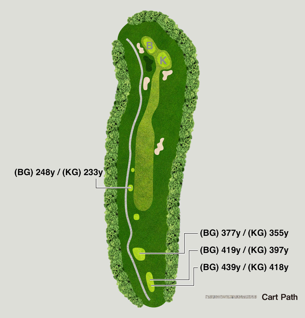 A long middle hole. The OB on the left of the green is shallow, so accuracy off the tee is important.