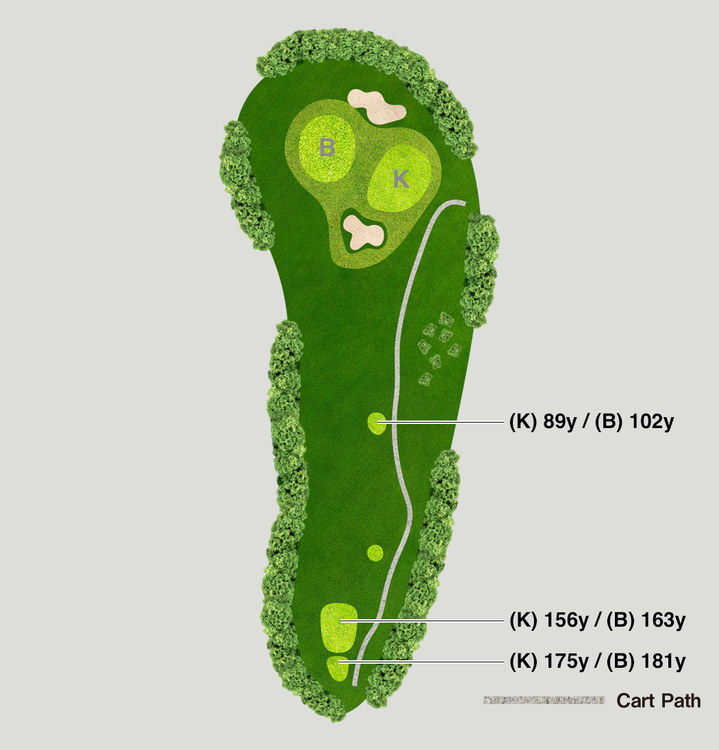 Watch out for the penalty area on the left side of the green; aiming for the center of BG or KG is the safest play.