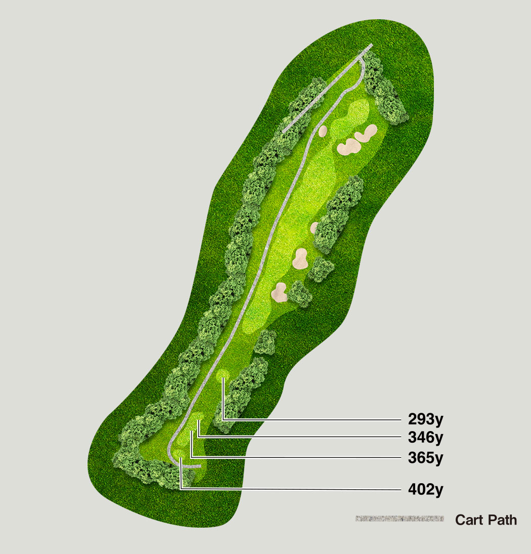 A gentle uphill hole. Aim left; with a long, four-tiered green, checking the pin position is essential.