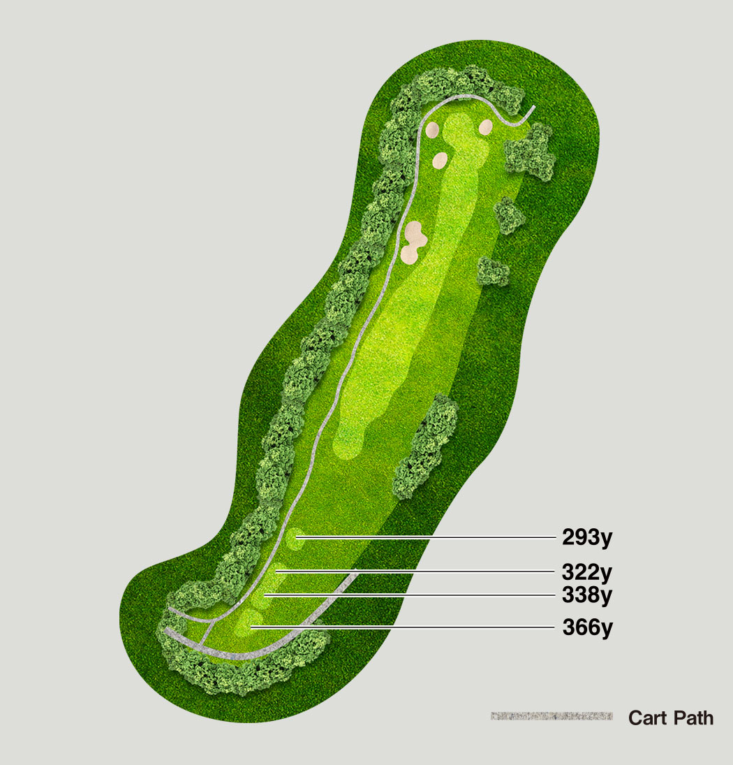 Tee shot accuracy is important. With a two-tiered green, pay close attention to the pin location.