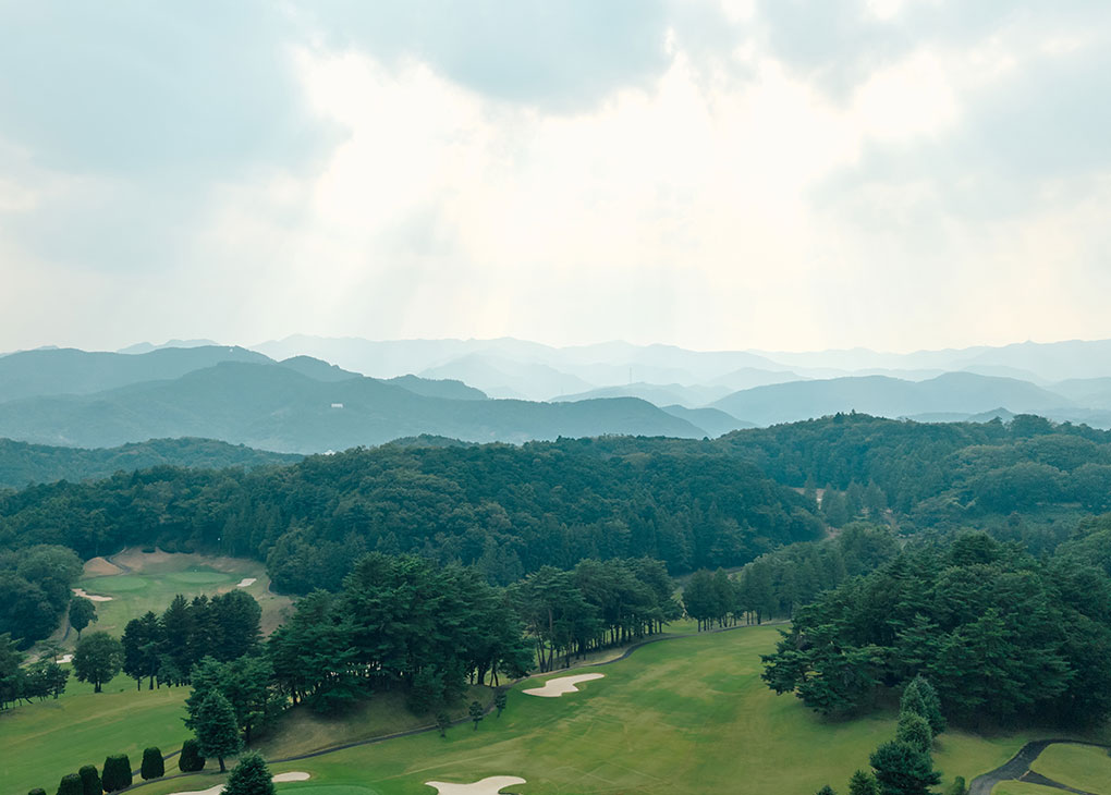 遠方に日光連山を望む、武蔵野台地の森に抱かれるように広がる入間カントリー倶楽部。