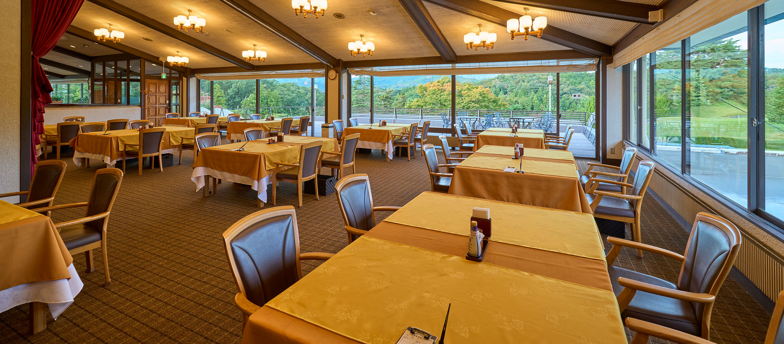 レストランでは、春の桜、秋の紅葉など、四季折々の自然を眺めながら、