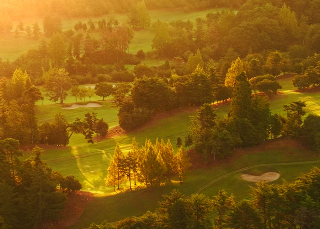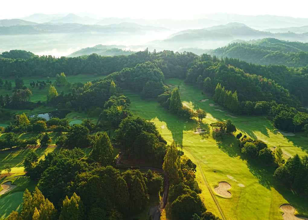 鴻応山の稜線を借景に、静かな丘陵地に広がる関西カントリークラブ。