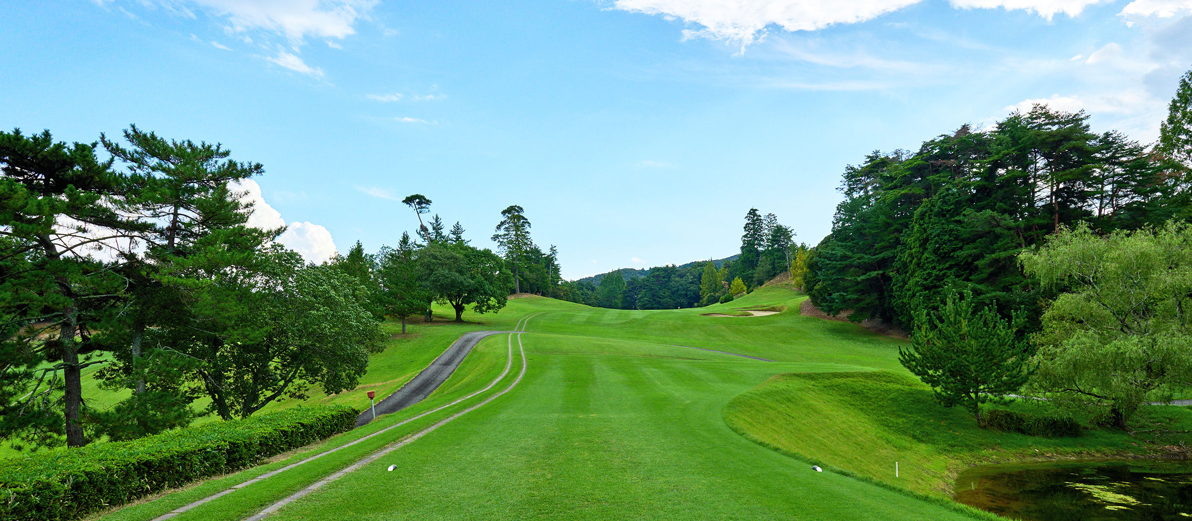 緩やかな打ち上げのミドルホール。グリーンは奥から速いため、手前から寄せることが安全策です。