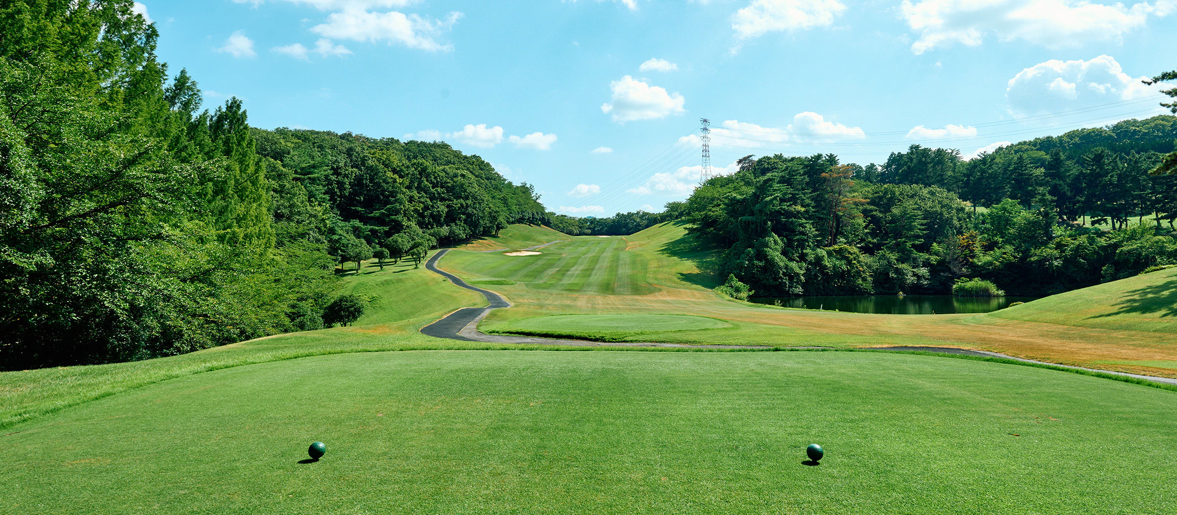 やや打ち上げのロングホール。左右のOBが迫り、グリーン手前のバンカーにも注意が必要です。
