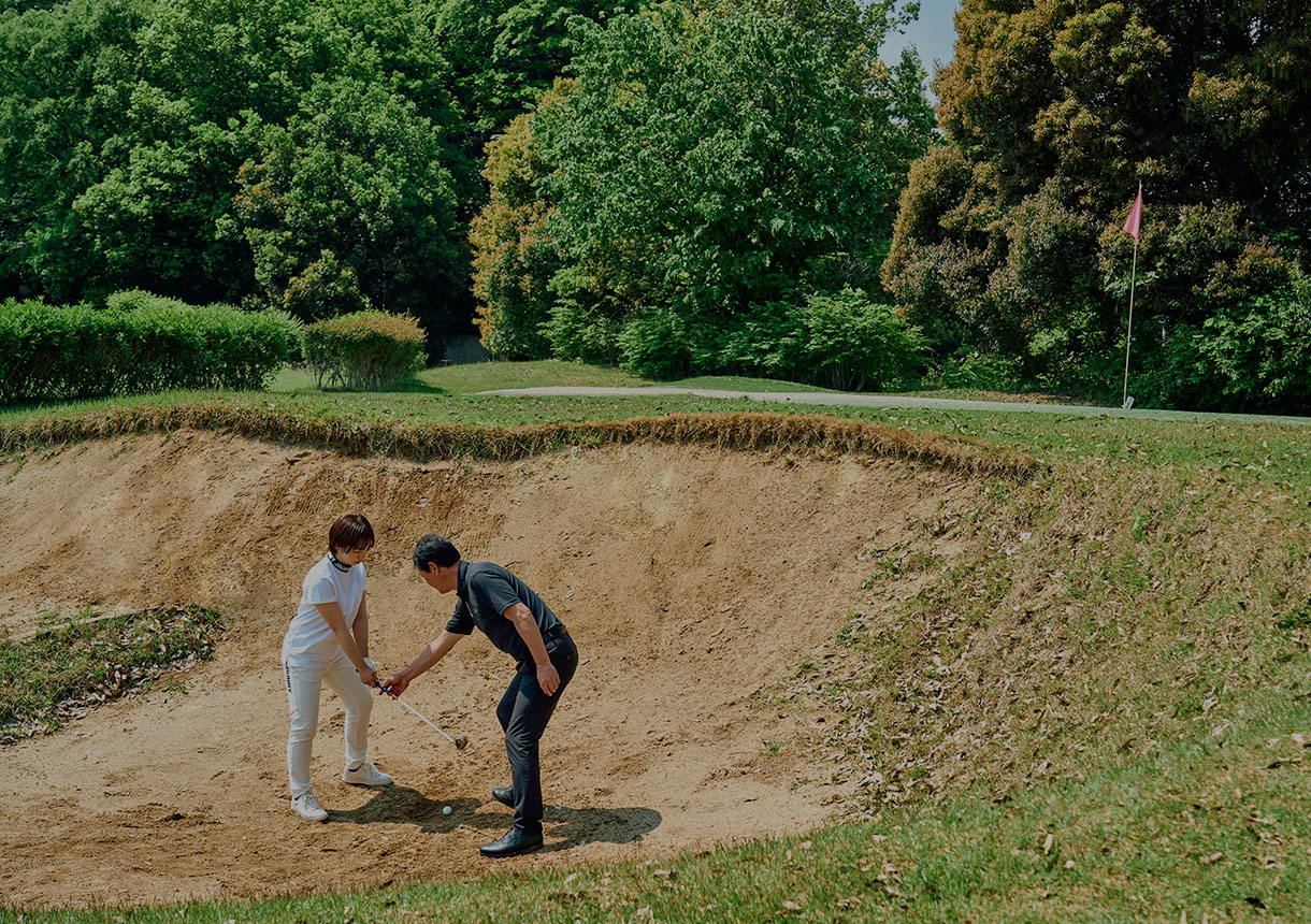 ぶっつけ本番でのエクスプロージョンは難しいものです。深浅2タイプのバンカー練習場で、砂を取る感覚を養えます。