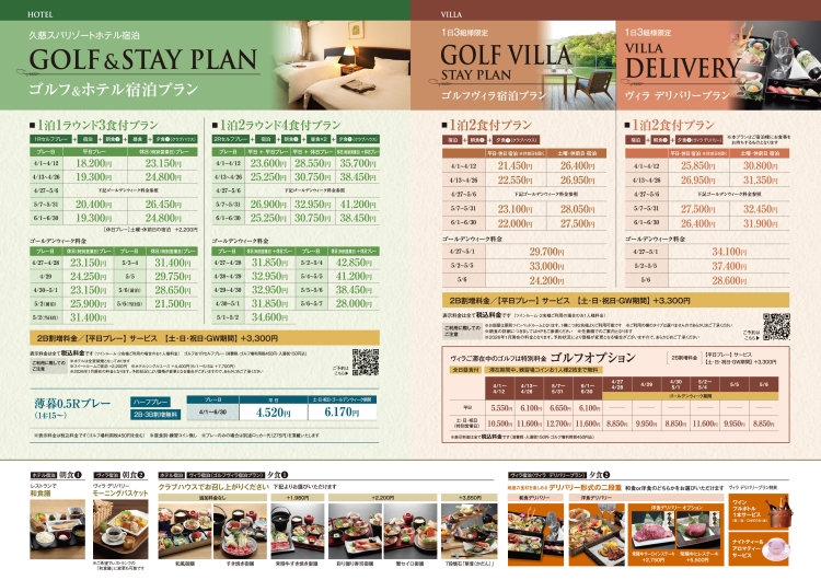 ゴルフのみでのご利用はもちろん、ゴルフと宿泊がセットになったゴルフ&ステイプランではホテル/ヴィラから宿泊タイプをお選びいただけます。