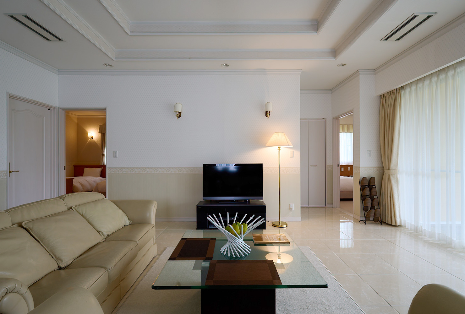 瀟洒でラグジュアリーな空間が広がる、エグゼクティブタイプの客室。別荘を思わせるかのような、美しく落ち着きのある佇まいは、一目見ただけでこれから始まる癒しの時間を予感させてくれます。日常を離れ、何にも縛られない自分だけの空間で、悠然とお過ごしください。