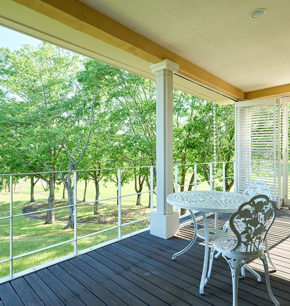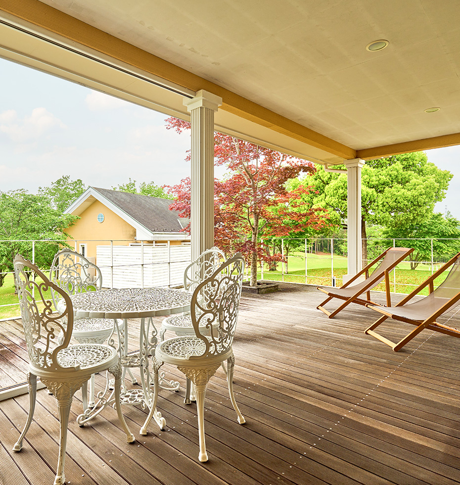 広々としたテラスからコースの眺望を存分にお楽しみください。