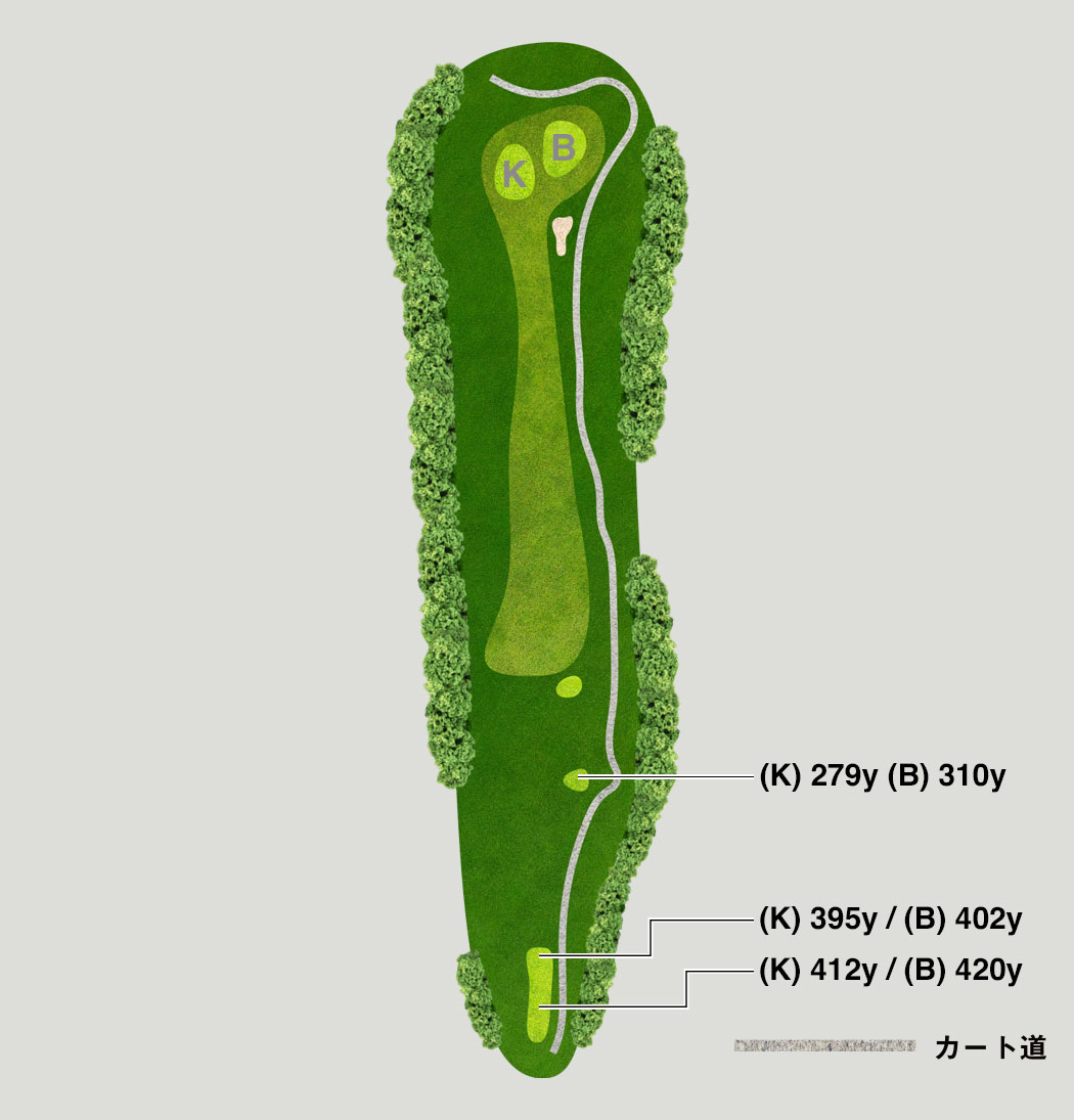 フェアウェイセンターを狙い、グリーンの起伏を読んでピン位置を確認し、セカンドショットへ。