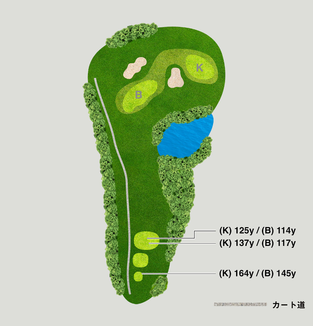 距離感重視です。奥のバンカーに入れると難しくなります。