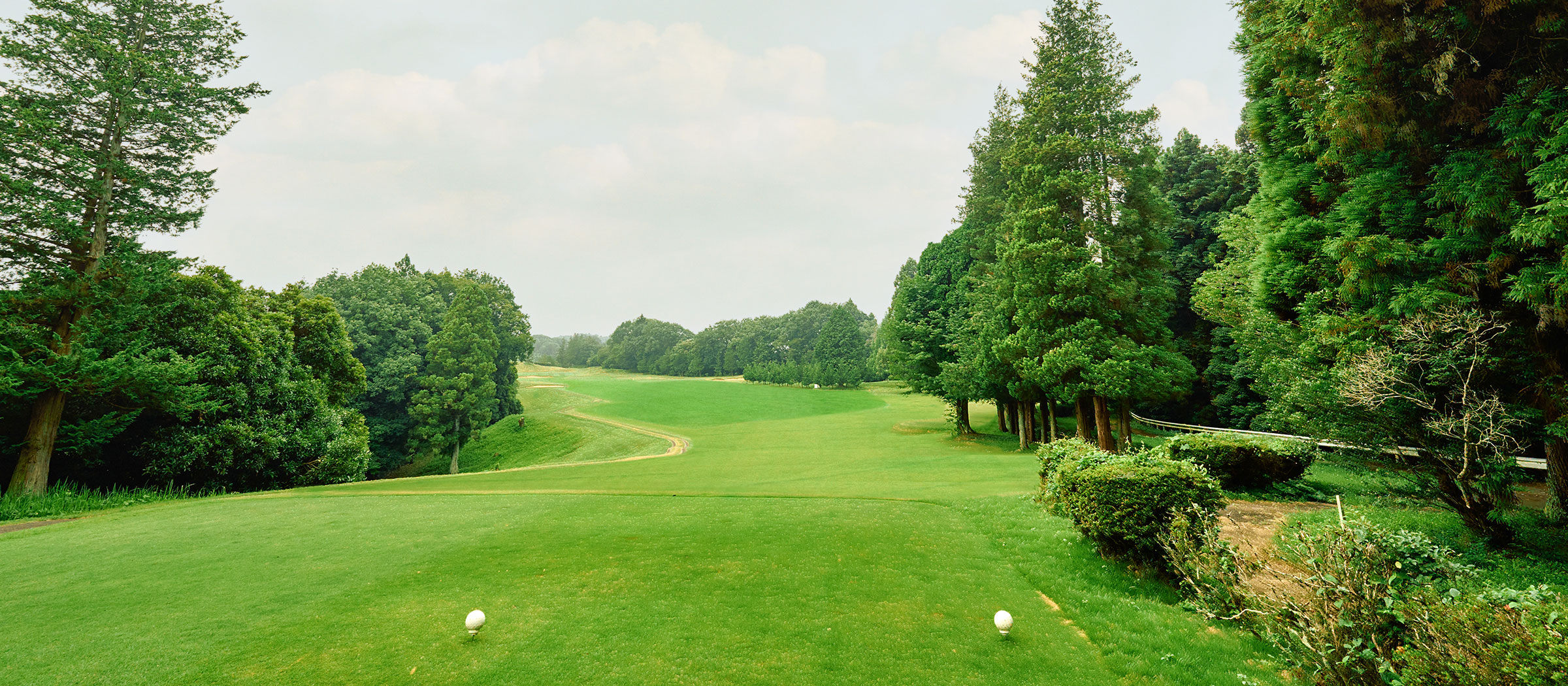 左はOBで、桜の木の上を抜くと好位置キープできます。右のラフからは距離が残ります。