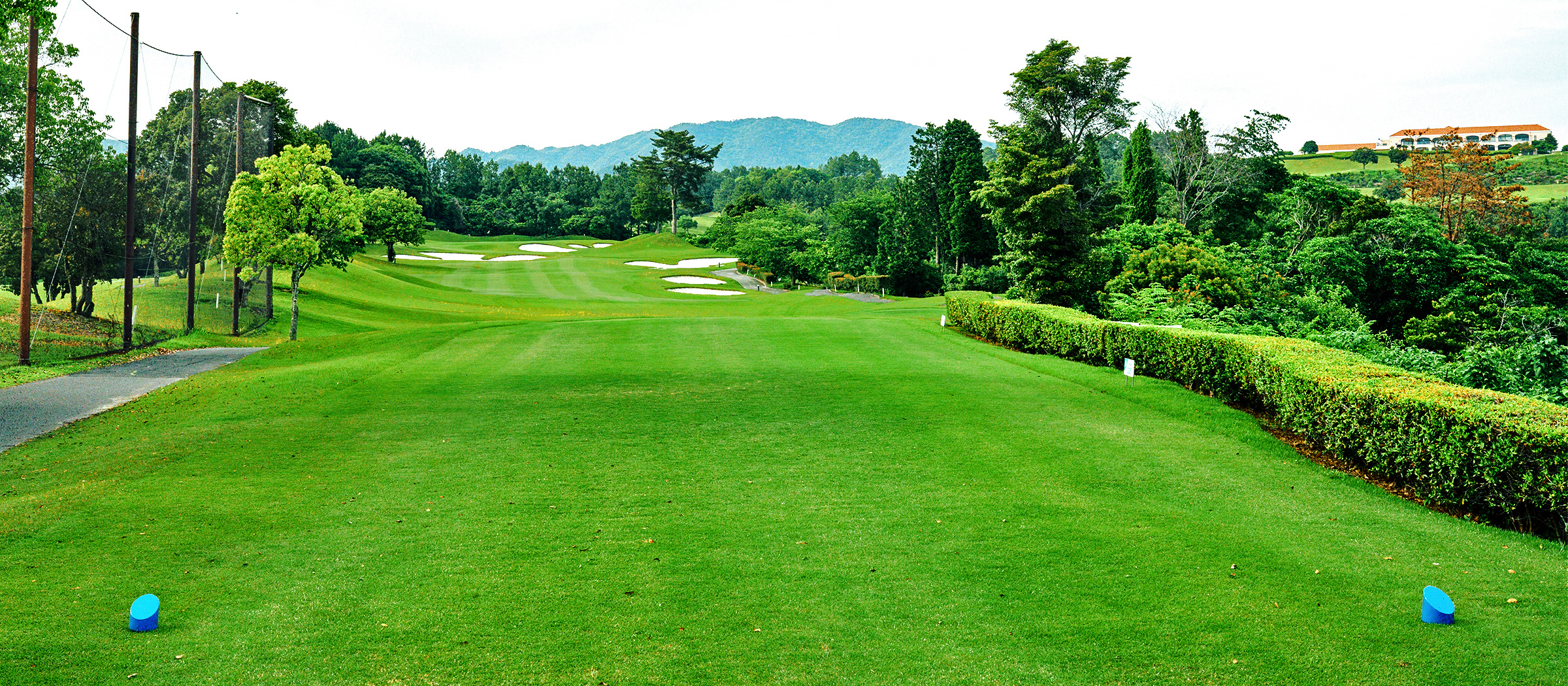 比較的距離のないミドルホール。ティーショットは自信のあるクラブで吹き流し方向が狙い目。バンカーを避ける為、距離感に注意が必要。