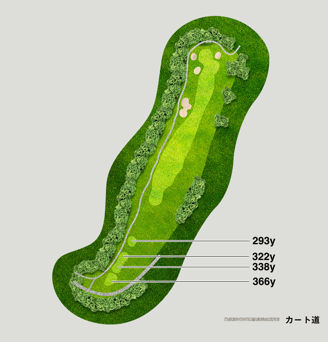 HDCP18の距離のないミドルホール。ティーショットは飛距離より方向が大事。グリーンは2段グリーンのため、ピン位置に注意。