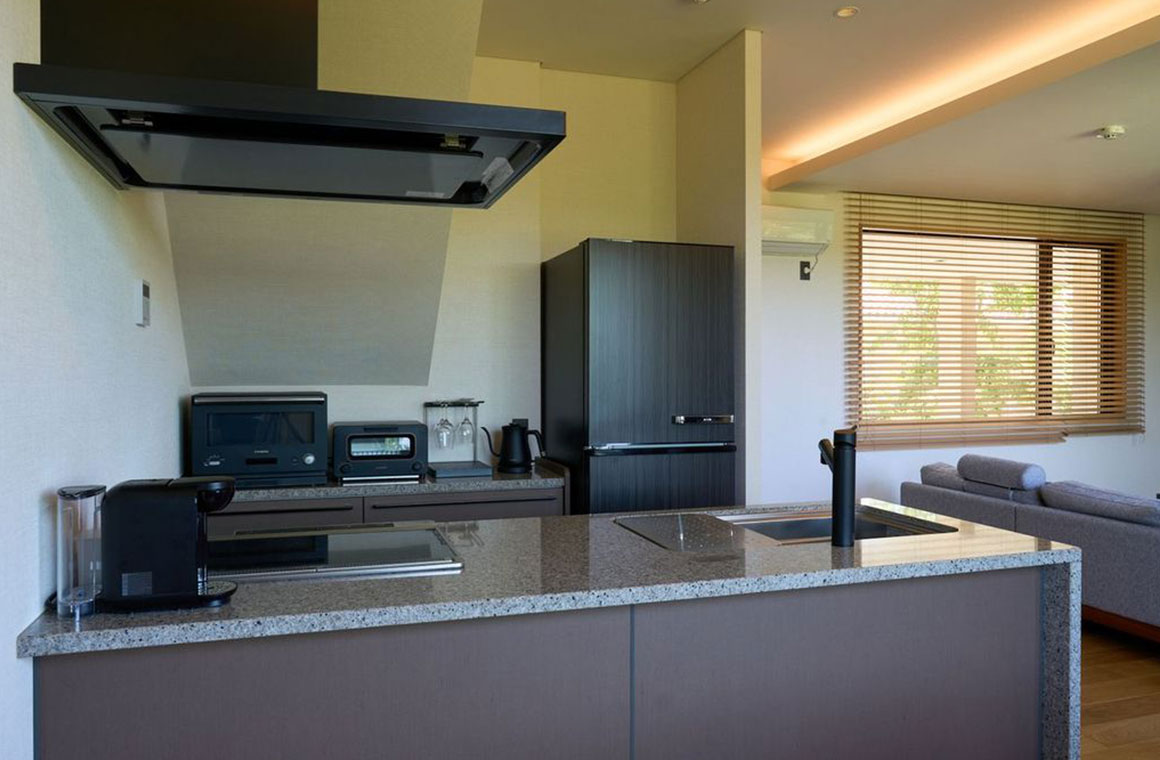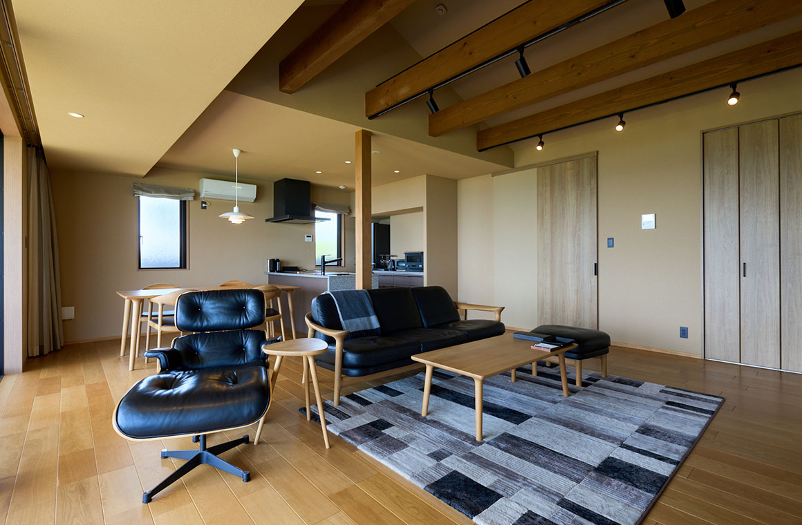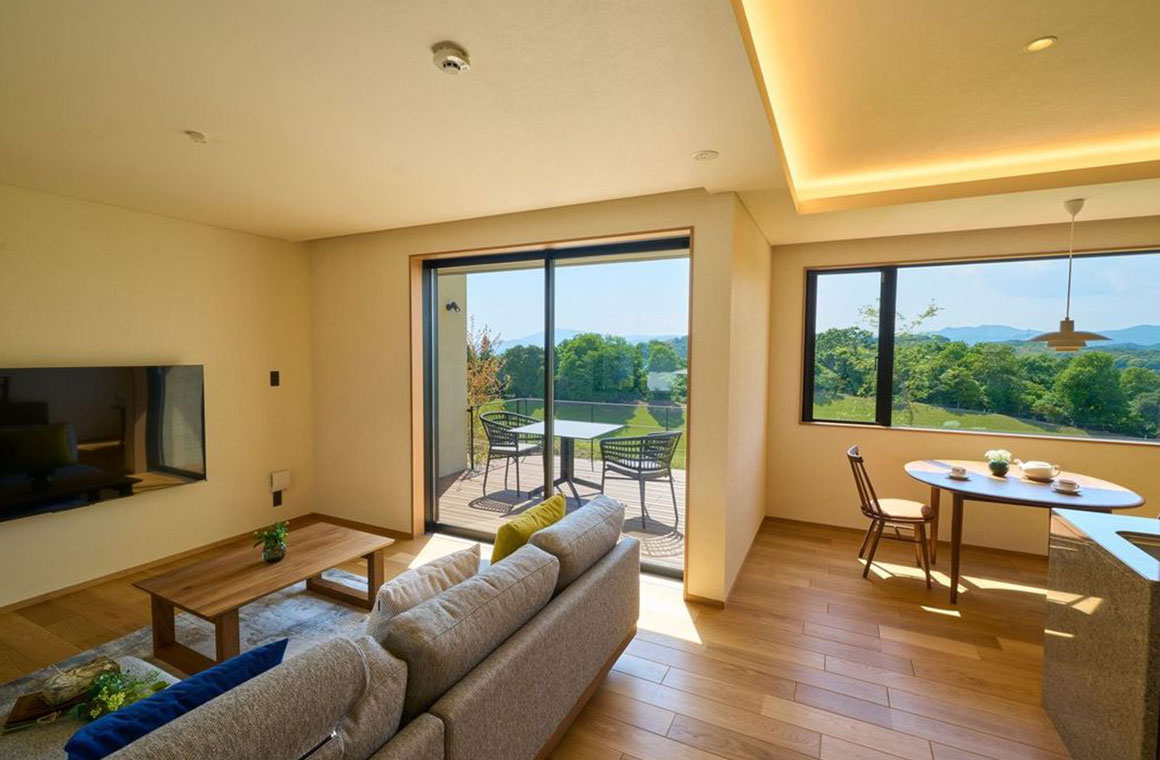 フェアウェイと瀬戸内海を望む開放的なロケーションに位置する1LDKタイプのヴィラ。約73㎡のゆとりある空間の中に、吹き抜けのリビングと独立したベッドルームを備えており、まるで別荘で暮らすかのような落ち着いた雰囲気を味わうことができます。静かで快適な滞在をお求めの方におすすめです。